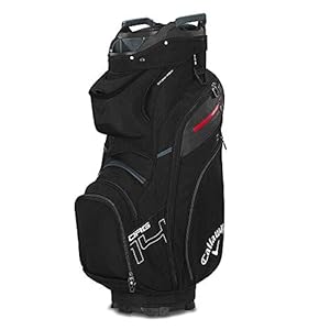 14 Way top with individual full-length dividers including separate putter well with TPE insert for shaft protection Improved front-facing molded range finder pocket Velour-lined valuables pocket
