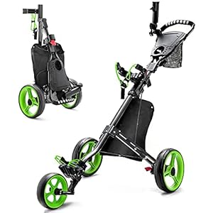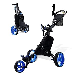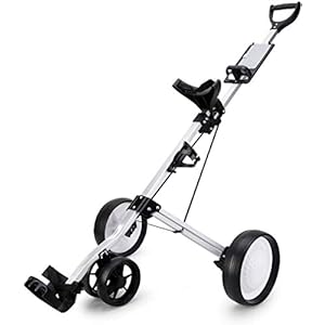 Folding Lightweight Golf Cart: This collapsible cart with wheels is built with a super strong, lightweight, and sturdy aluminum frame that makes the golf pull cart easily maneuverable. It also has an attractive finish that will coordinate with any golf bag.Ideal for, space-conscious golfers looking for an easy-to-fold push trolley bursting with features.