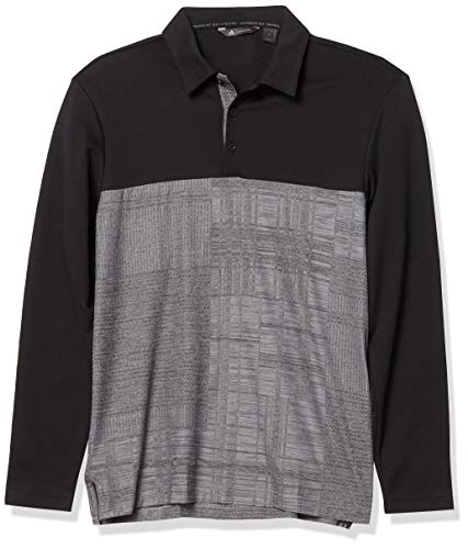 Move from the course to the street with ease. This men’s long sleeve golf polo shirt is designed with knit jacquard fabric on the lower body for a stylish, 3D-graphic effect. The stretchy build absorbs moisture to keep you dry and comfortable.