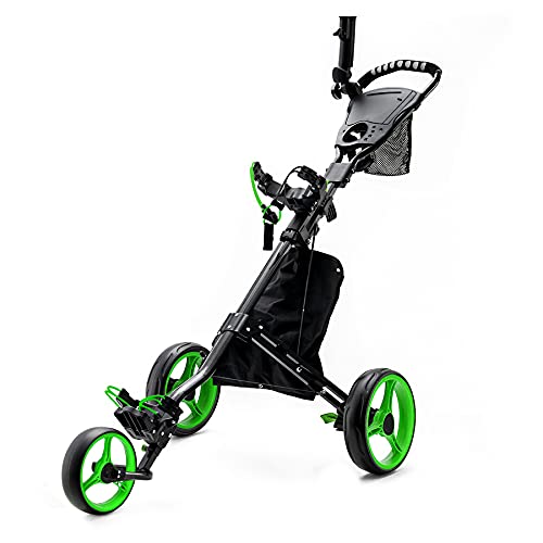 【Height Adjustable Handle】There are 4 angles chosen to adjust handle height in the golf push cart. It is designed for multiple pushing positions and users of different heights (Designed for both Teenagers and Adults).