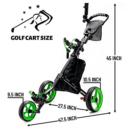 【Super Load-bearing & Lightweight】The maximum load-bearing capacity of golf push cart is 33 lbs despite its lightweight (11.2 lbs) design. It can also be folded into a compact size effortlessly and be easily put into the trunk of the car.