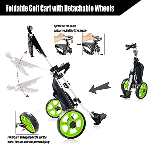【STORE & SHIPPING】Simple assemble needed. You will get folding golf cart.2 wheels stability on all terrains, collapsible and easy to store.