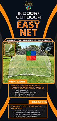 This multi-sport, multi-use utility net is great for any type of outdoor sport practice such as golf, tennis, soccer and more. The large 7′ high by 9′ wide net is supported by a flexible aluminum and fiberglass frame with shock-corded strength. This outdoor design is best supported by burying 6-8″ below the dirt or grass surface.