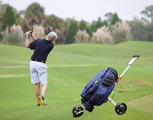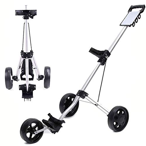 Folding Lightweight Golf Cart: This collapsible cart with wheels is built with a super strong, lightweight, and sturdy aluminum frame that makes the golf pull cart easily maneuverable. It also has an attractive finish that will coordinate with any golf bag.Ideal for, space-conscious golfers looking for an easy-to-fold push trolley bursting with features.