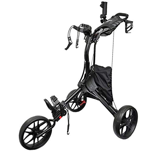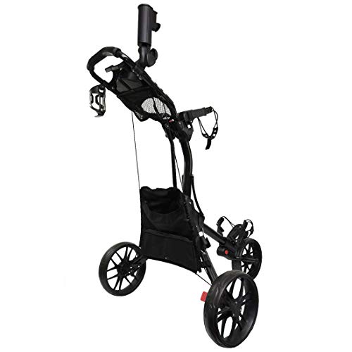 The golf cart can be easily folded into a compact size, and you can fold and unfold the body in two easy steps. Its foldable design totally save your storage space, or more conveniently for indoor and outdoor golf practice.