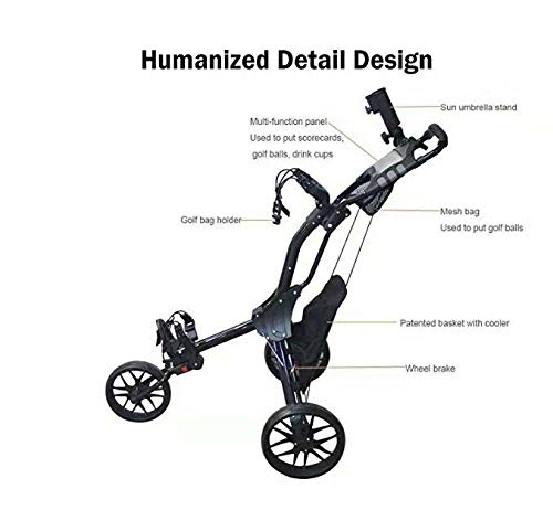 Equipped with ergonomic handle for comfort,the golf cart handle is an adjustable handle that can be adjusted to different heights. Built in umbrella holder: You won’t get stuck on the course in a downpour ill-equipped again.