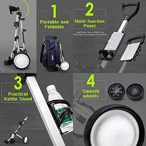 Durability: This golf cart use strong aluminum frame and it is durable while remaining lightweight. Durable frame with high strength support cables. Durable wheels with anti-skid tires, sturdy frame with high strength support cables.