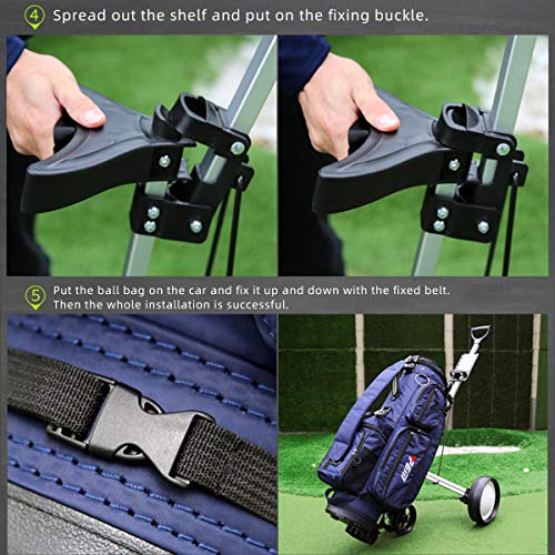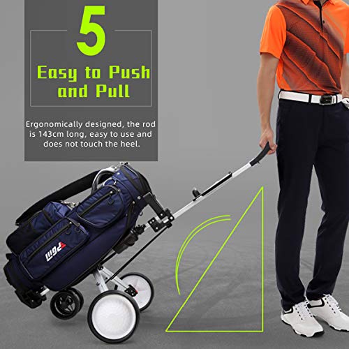 Easy to use: This collapsible golf push cart with quick-release wheels is easy storage; Folds in seconds with simple 2-step fold; The cart can be easy to transport easily.