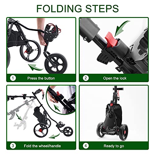 Warm notes: The front wheel is also foldable, please unfold it when using the golf push cart.