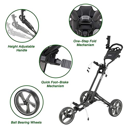 DURABLE DESIGN AND EASY TO INSTALL: The golf cart with dubble main upper frame tubes shows outstanding sturdiness and stability. For installation, you only need to insert 3 wheels within seconds.