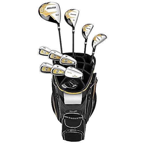 The Spalding Molitor golf set includes everything needed for a great round of golf. This set features 11 clubs, one cart bag with a rain hood, and 4 head covers.