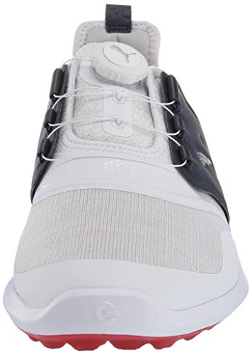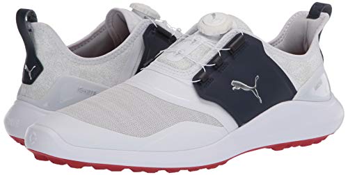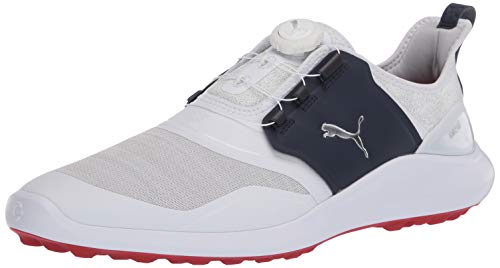 The iconic ignite spikeless franchise has been taken to the net level! built from the ground up with pro form TPU outsole with an organically-altered traction pattern. A full length ignite foam midsole, wrapped in soleshield for added durability, provides unparalleled comfort and energy return to help you feel and play your best all day long. The upper features a flat-knit waterproof mesh vamp with pwrframe reinforcement, and decoupled pwrcage pieces incorporated with puma’s disc technology provide quick, easy, and secure fit. The innovative materials and progressive design provide the performance you need on the course and the style you need while off it.