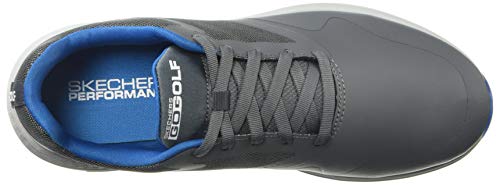 Los zapatos de golf Skechers Max combinan materiales ligeros y atléticos con nuestras innovadoras tecnologías de amortiguación. La plantilla Goga Max ofrece una amortiguación mejorada de alto rebote, mientras que la suela ultra ligera y sensible te mantendrá cómodo los 18 hoyos.