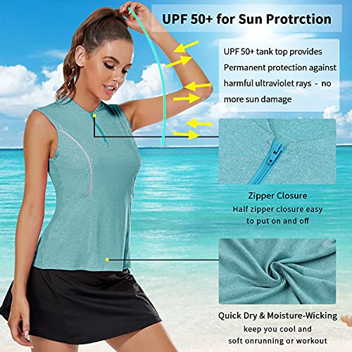 💖UPF 50+ SUN PROTECTION Womens Sleeveless Shirts 💖Women tank tops workout with UPF 50+ fabrication protects effectively your skin during outdoor activity and delivers a relaxed fit for all-day comfort.